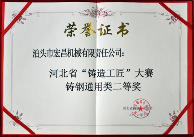 泊頭市宏昌機械有限責任公司,坐落在中國鑄造名城-----河北省泊頭市。公司集鑄造和機加工于一體,是國內大型鑄造規?;瘜I生產基地。被中國鑄造協會授予“首屆全國鑄造分行業排頭兵企業”、“第二屆中國鑄造行業熔模精密鑄造分行業排頭兵企業”;是“中國鑄造協會精鑄分會理事單位”、“河北省鑄造協會副會長單位”、“河北省鑄造協會專家委員會主任單位”、“泊頭市鑄造協會會長單位”。公司通過了ISO9001:2015質量體系認證、國軍標GJB9001B-2009認證、挪威船級社CE認證及出口產品Emark認證等,產品出口歐美、日本等許多國家。